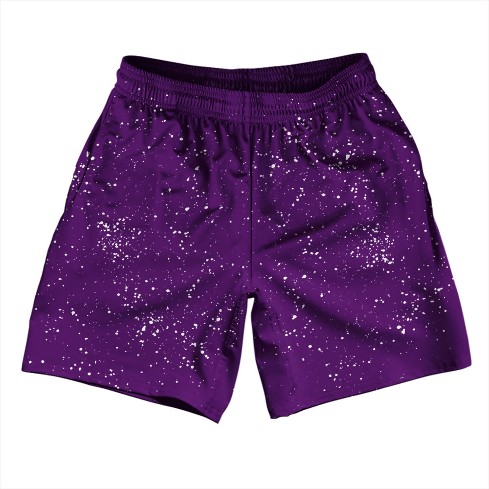 • Super Fly Pattern Purple Medium and White Athletic Running Fitness Exercise Shorts 7" Inseam Shorts Made In USA