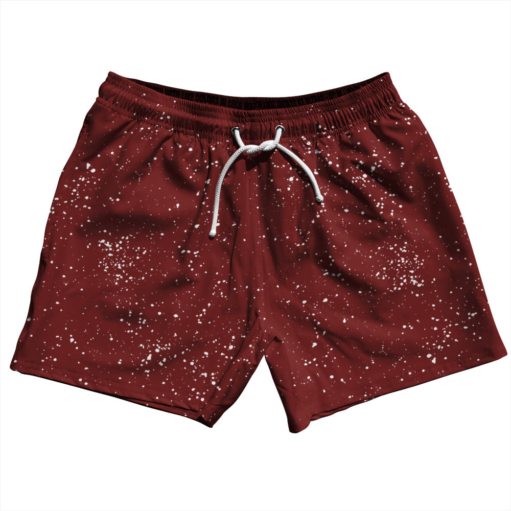 - Super Fly Pattern Red Maroon and White 5" Swim Shorts Made in USA