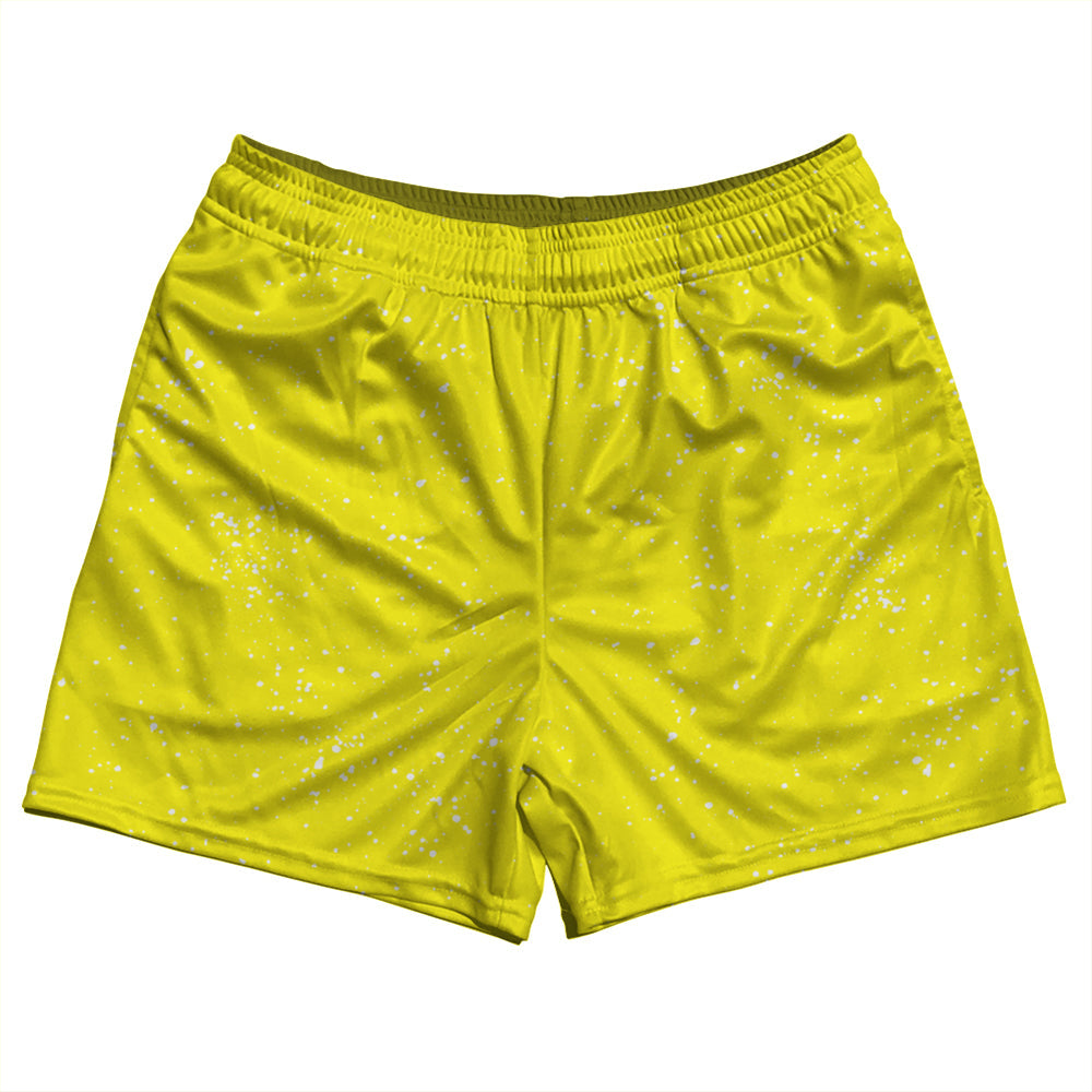 - Super Fly Pattern Yellow Bright and White Rugby Shorts Made In USA