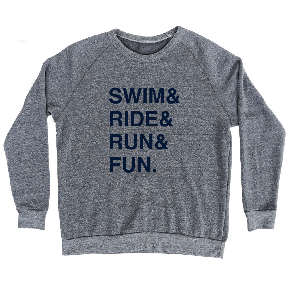 Swim& Ride& Run& Fun. Custom Name & Adult Tri-Blend Sweatshirt