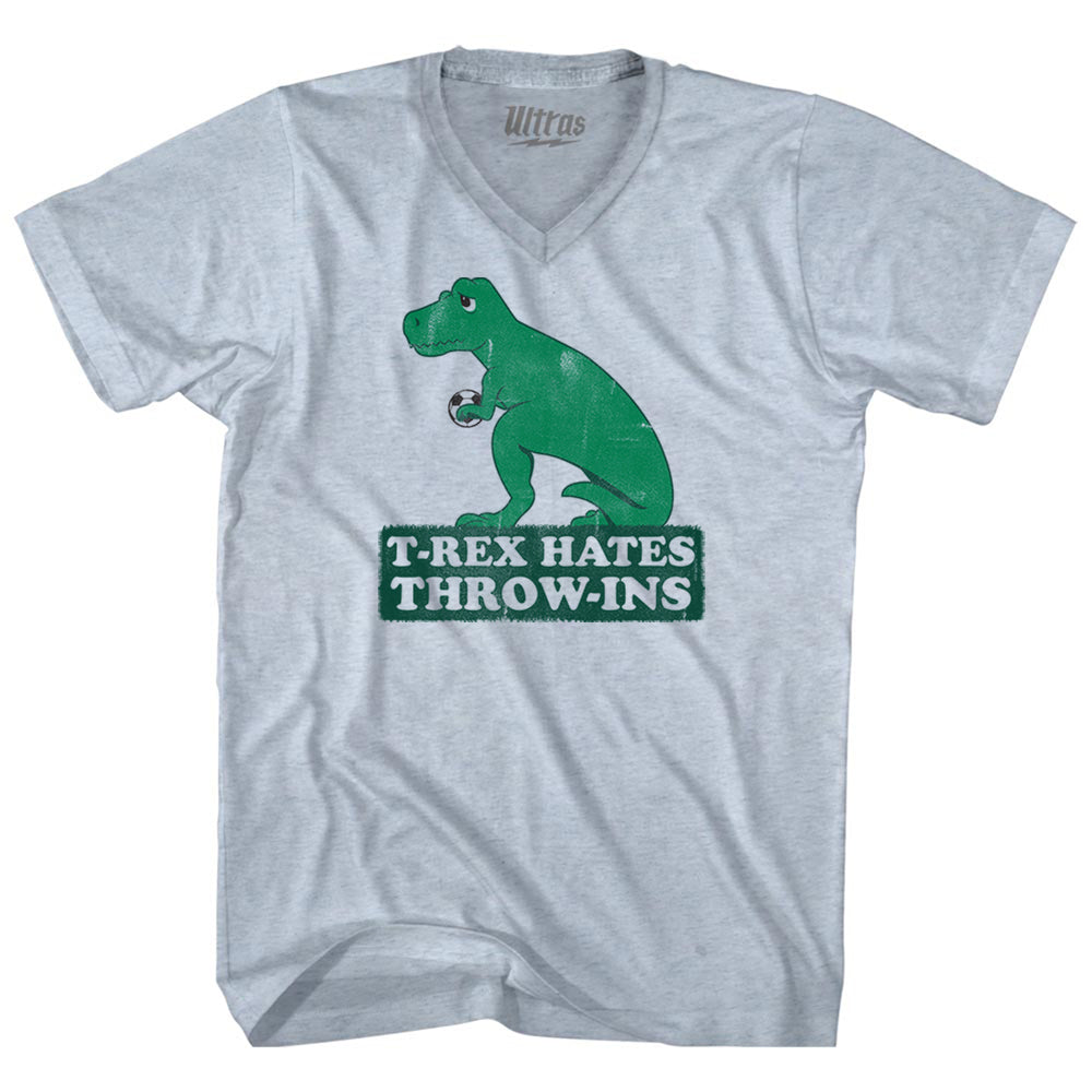 T-Rex Hates Soccer Throw Ins Adult Tri-Blend V-neck T-shirt