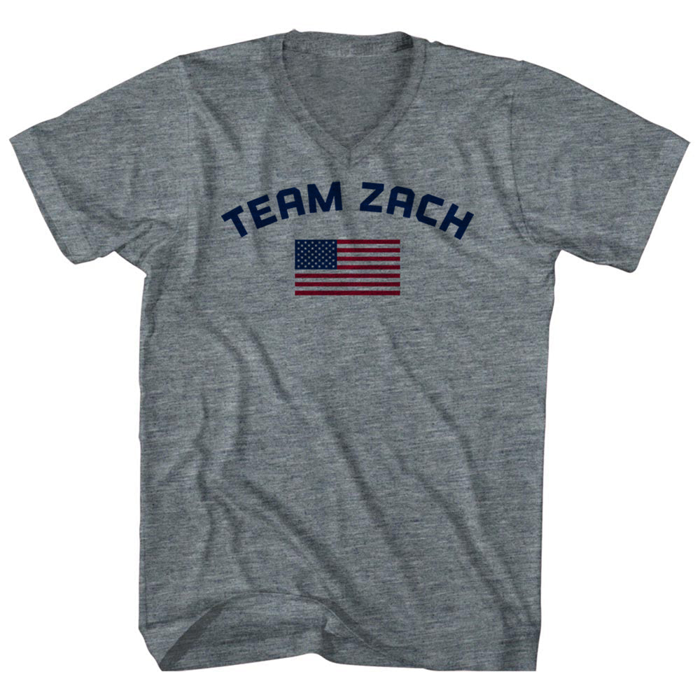 Team Zach Over An American Flag Adult Tri-Blend V-Neck T-Shirt