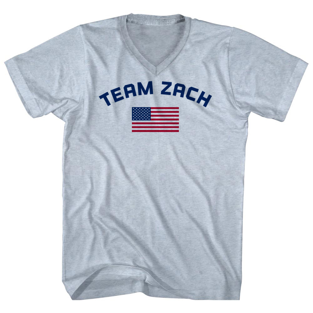 - Team Zach Over An American Flag Adult Tri-Blend V-Neck T-Shirt