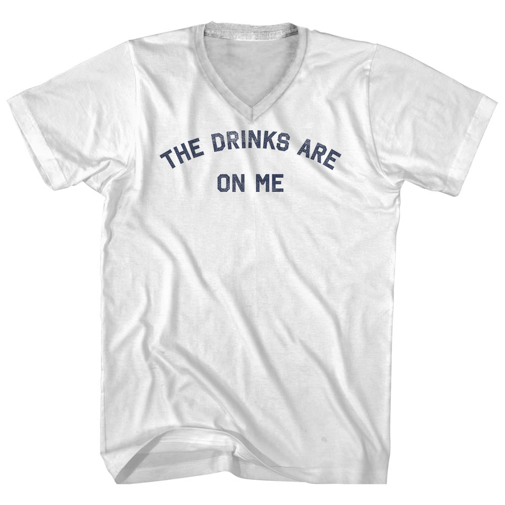 - The Drinks Are On Me Adult Cotton V-neck T-shirt