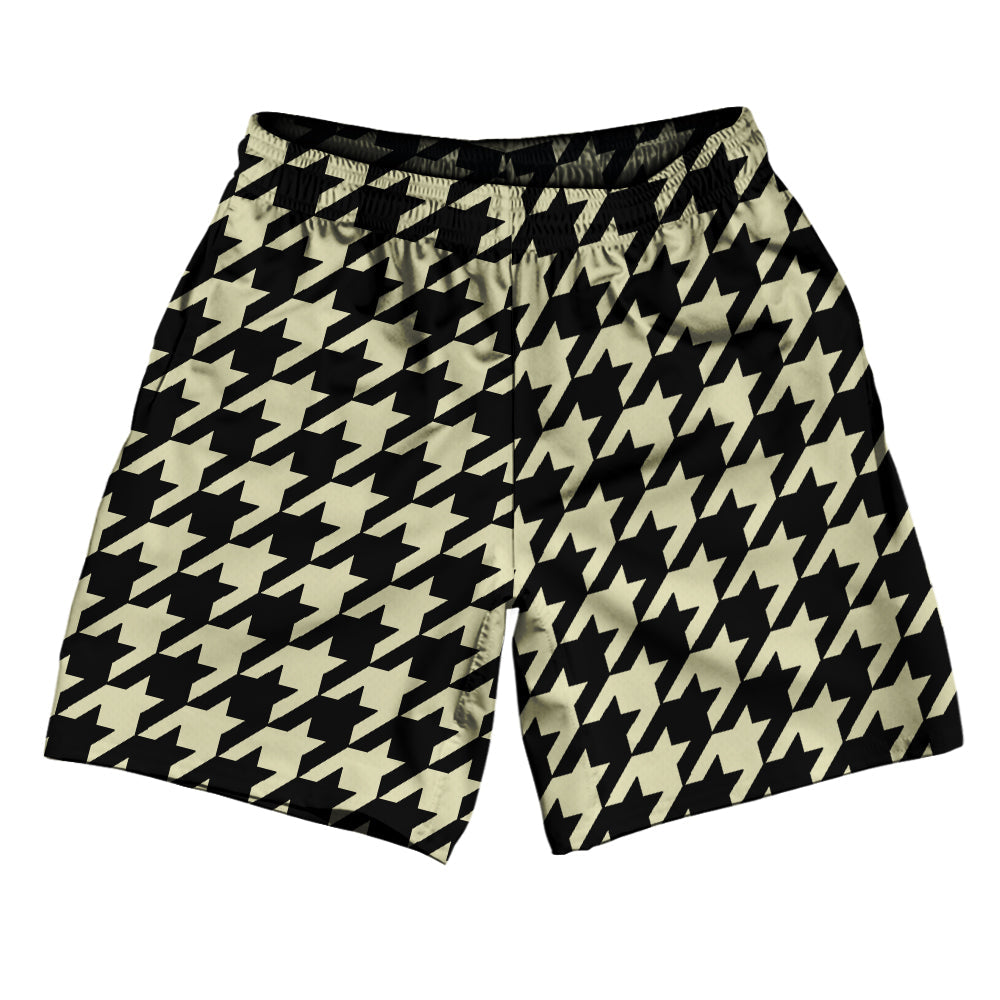 Vegas Gold And Black Houndstooth Athletic Running Fitness Exercise Shorts 7" Inseam Shorts Made In USA