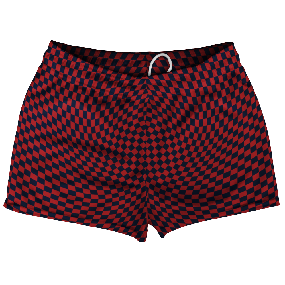 - Warped Checkerboard Shorty Short Gym Shorts 2.5" Inseam Made In USA