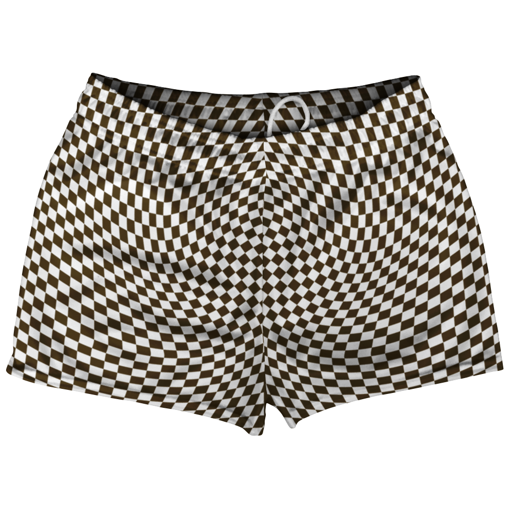 Warped Checkerboard Shorty Short Gym Shorts 2.5" Inseam Made In USA