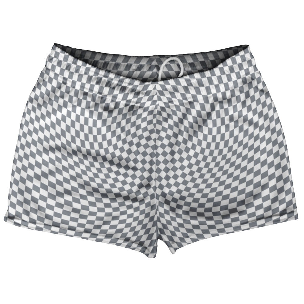 Warped Checkerboard Shorty Short Gym Shorts 2.5" Inseam Made In USA