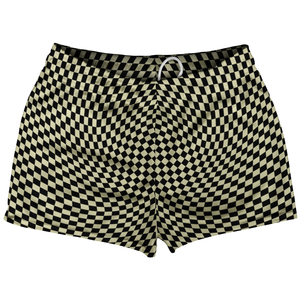 Warped Checkerboard Shorty Short Gym Shorts 2.5" Inseam Made In USA