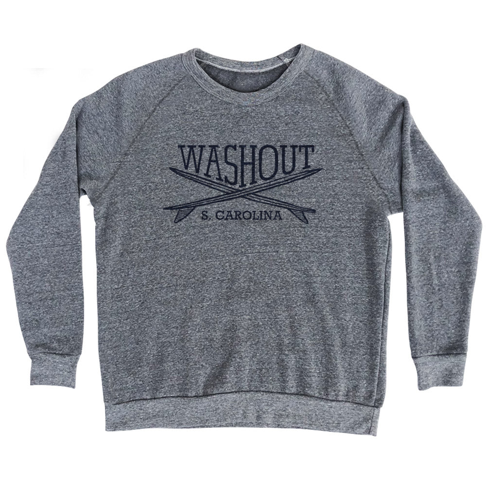 - Washout Surf Break Crossed Surf Board Surfing Destination Adult Tri-Blend Sweatshirt