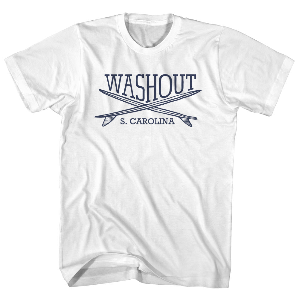 - Washout Surf Break Crossed Surf Board Surfing Destination Womens Cotton Junior Cut T-Shirt