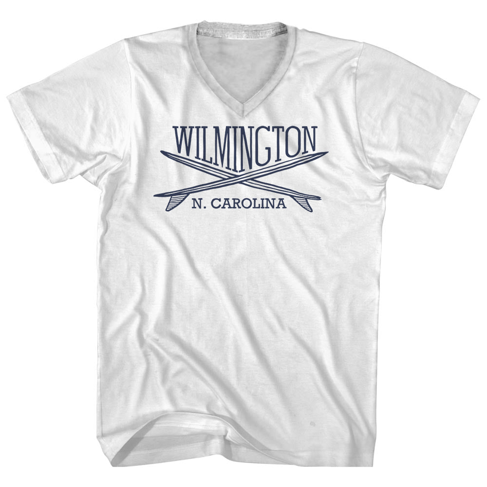 - Wilmington Surf Break Crossed Surf Board Surfing Destination Adult Cotton V-Neck T-Shirt