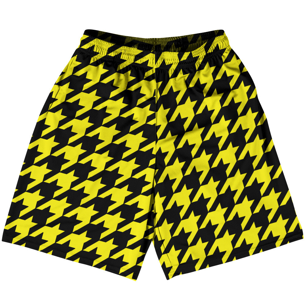 - Yellow Bright And Black Houndstooth Basketball Practice Shorts Made In USA