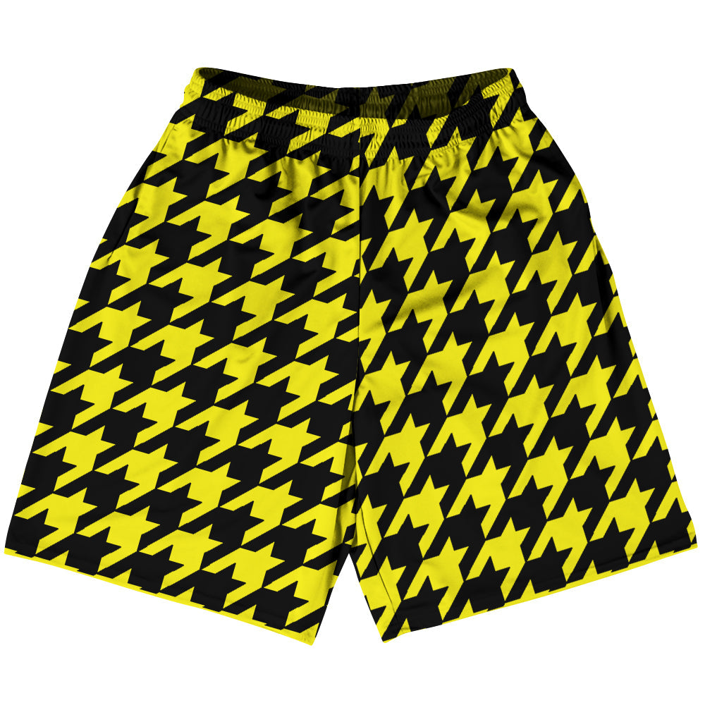 - Yellow Bright And Black Houndstooth Lacrosse Shorts Made In USA